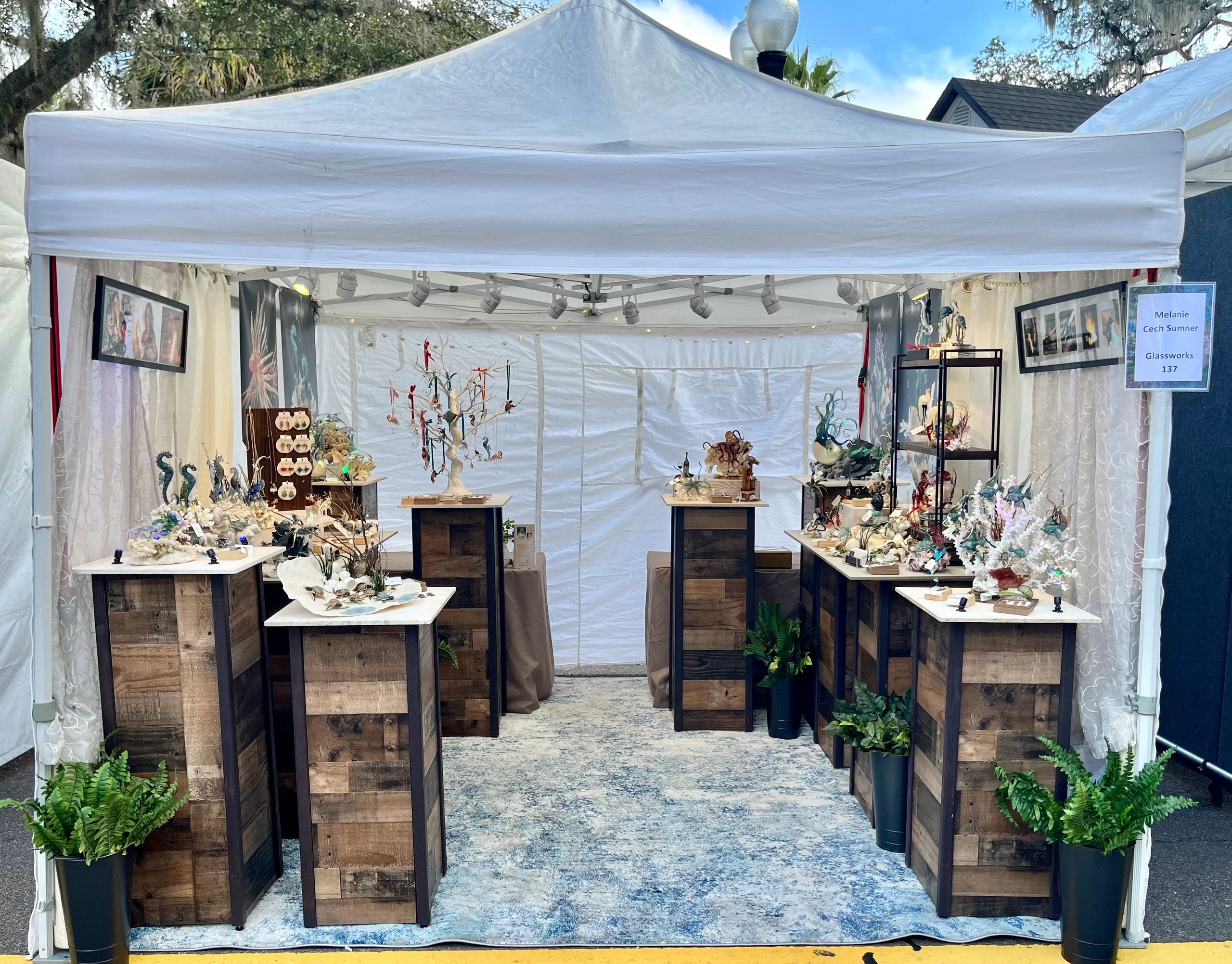 My flamework glass sculptures and jewelry are made with borosilicate glass rods. The pieces are sculpted in an oxygen/propane flame, trimmed with 22kt gold, an. All pieces are unique, one-of-a-kind designs that are set in natural corals, shells, and stones that represent my love for sun, sand, and sea.